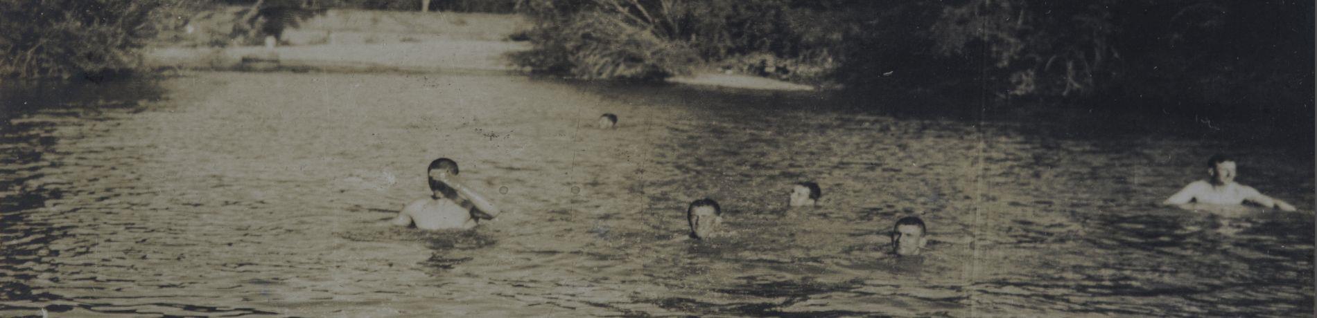 Scatti di vita quotidiano nelle retrovie. Un gruppo di soldati fanno il bagno nel corso d'acqua. La 7ª Batteria nel sett ...